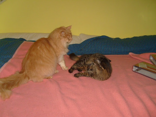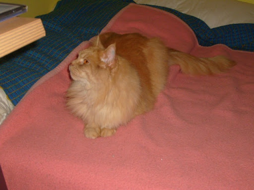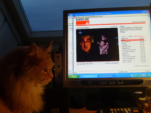 Abends gings dann mit Flame wieder zum Tierarzt. Ihm gehts Gott sei Dank wieder besser, obwohl er hartnäckig die Tabletten verweigert hat! Das Zahnfleisch ist fast wieder ok. Auf dem Rückweg bin ich nach hause gefahren. Markus saß mit Flame im Transportkorb (Ähm..nicht Markus mit Flame, sondern Flame alleine). Damit er nicht so sehr maunzt, (Weil: Er hasst Autofahren), habe ich den Vorschlag gemacht, dass wir oben den Deckel aufmachen, damit er rausgucken kann!Es war zwar draussen stockduster, aber man sieht ja das ein oder andere Licht. Flame fand das so toll, dass er natürlich NICHT dran dachte, mit den Hinterpfoten im Korb zu bleiben, sondern kletterte (in einem kurzen unbeobachteten Augenblick von Markus) aus dem Korb raus und spazierte im Auto rum! Markus geriet schon leicht in Panik und ich habe mich schlapp gelacht! Der kleine Kerlchen hat so einen Willen, das ist echt klasse. Er plazierte sich dann auf die Hutablage und genoß die Fahrt sichtlich! Gott sei Dank waren wir nicht weit von zu Hause und ich bin ganz vorsichtig gefahren.